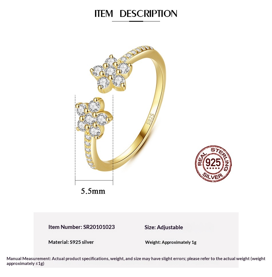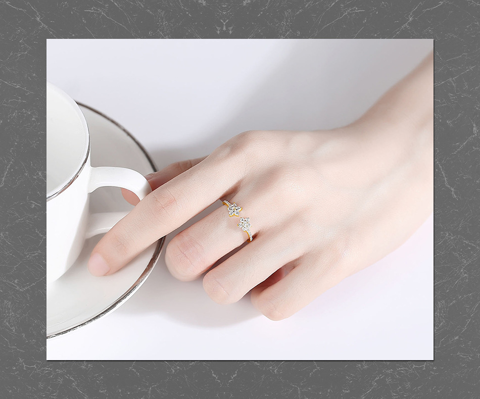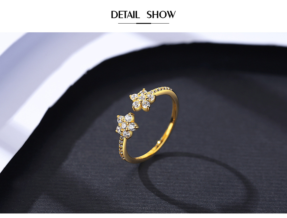 Micro-pave Zircon Ring In JapaneseKorean Style Open And Adjustable